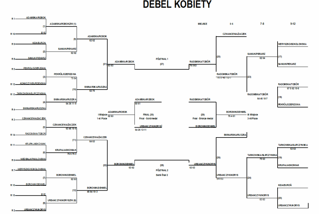W rywalizacji kobiet po raz kolejny złoto zdobyła para Aleksandra Adamska i Alina Robok, potwierdzając swoją dominację i ponownie pokonując w finale Iwonę Urbańczyk i Monikę Norys. Szczególnie cieszy nas jednak walka o trzecie miejsce. Był to bowiem mecz, który pokazał siłę nadchodzącego pokolenia – juniorki Julia Borowik i Daria Dehmel pokonały swoje rówieśniczki, Maję Radomską i Natalię Tobór. To wyraźny sygnał, jak mocno młode zawodniczki zaznaczają swoją obecność w rozgrywkach seniorskich!